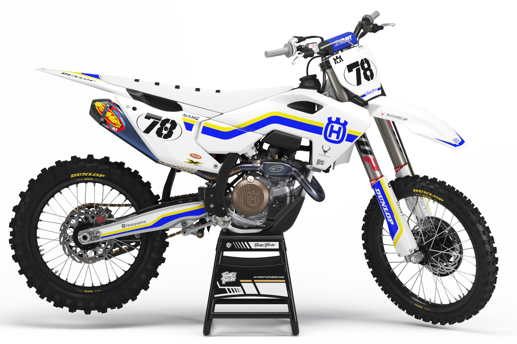 - Kit includes front fender, fork guards, front plate, shrouds, airbox, side plate, rear fender and swingarm decals